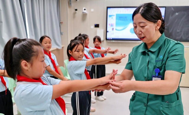 医护人员为学生普及心肺复苏相关知识。通讯员 曹建雄 摄