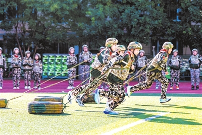 近日,内蒙古呼和浩特市玉泉区五塔寺东街小学举行“心系国防 强国有我”主题教育活动。学生通过参与抗战故事讲述、战术演示、涂彩伪装等军事技能挑战项目,在亲身实践与沉浸式体验中增强家国情怀与国防安全意识。
