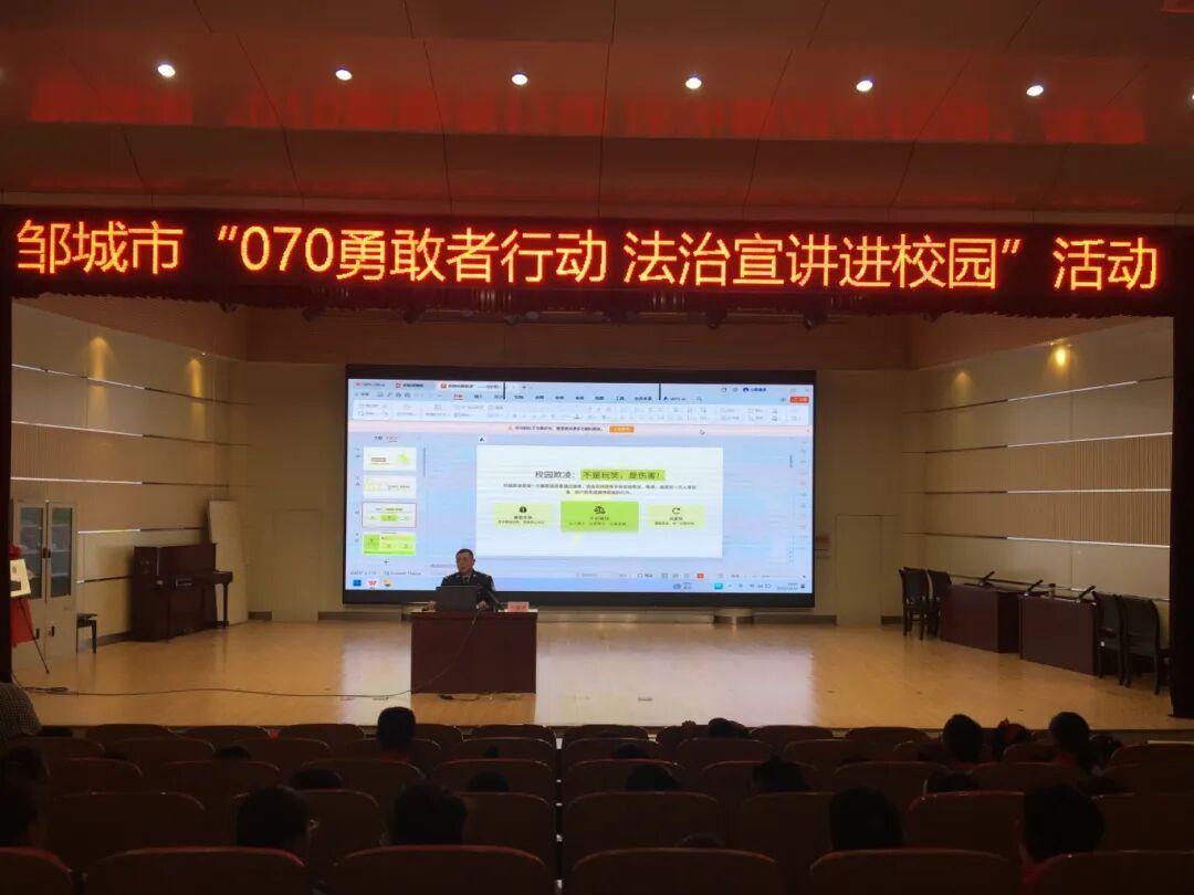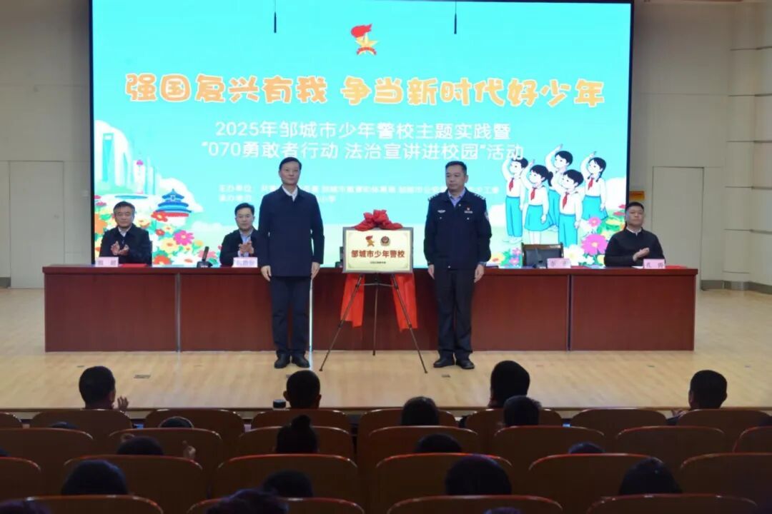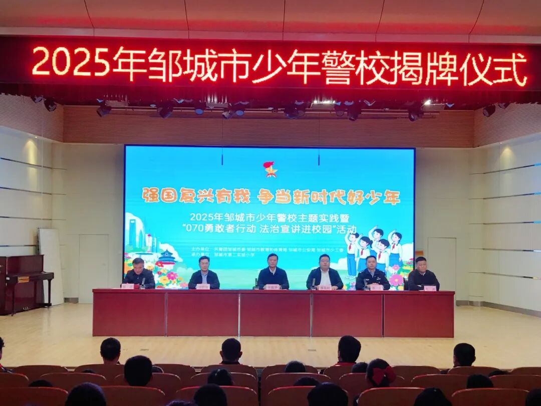 10月23日下午,邹城市2025年少年警校主题实践暨“070勇敢者行动 法治宣讲进校园”活动在市第二实验小学举办。市委常委、市委办公室主任宋振华出席活动并讲话。团市委、市教体局、市公安局主要负责同志,公安民警、各镇街总辅导员、市直小学少先队大队辅导员、第二实验小学师生代表参加活动。
