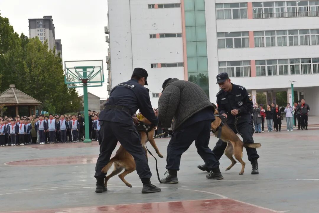 本次活动,为少年警校揭牌,聘请了少年警校校外辅导员;少年警校校外辅导员围绕《拒绝校园欺凌,守护阳光校园》主题,开展了“070勇敢者行动 法治宣讲进校园”专题讲座;市公安局开展了手势操、盾牌操、警犬实战技能演示,让青少年沉浸式学习安全防范技能知识,提升自我保护能力,持续织密校园安全网。