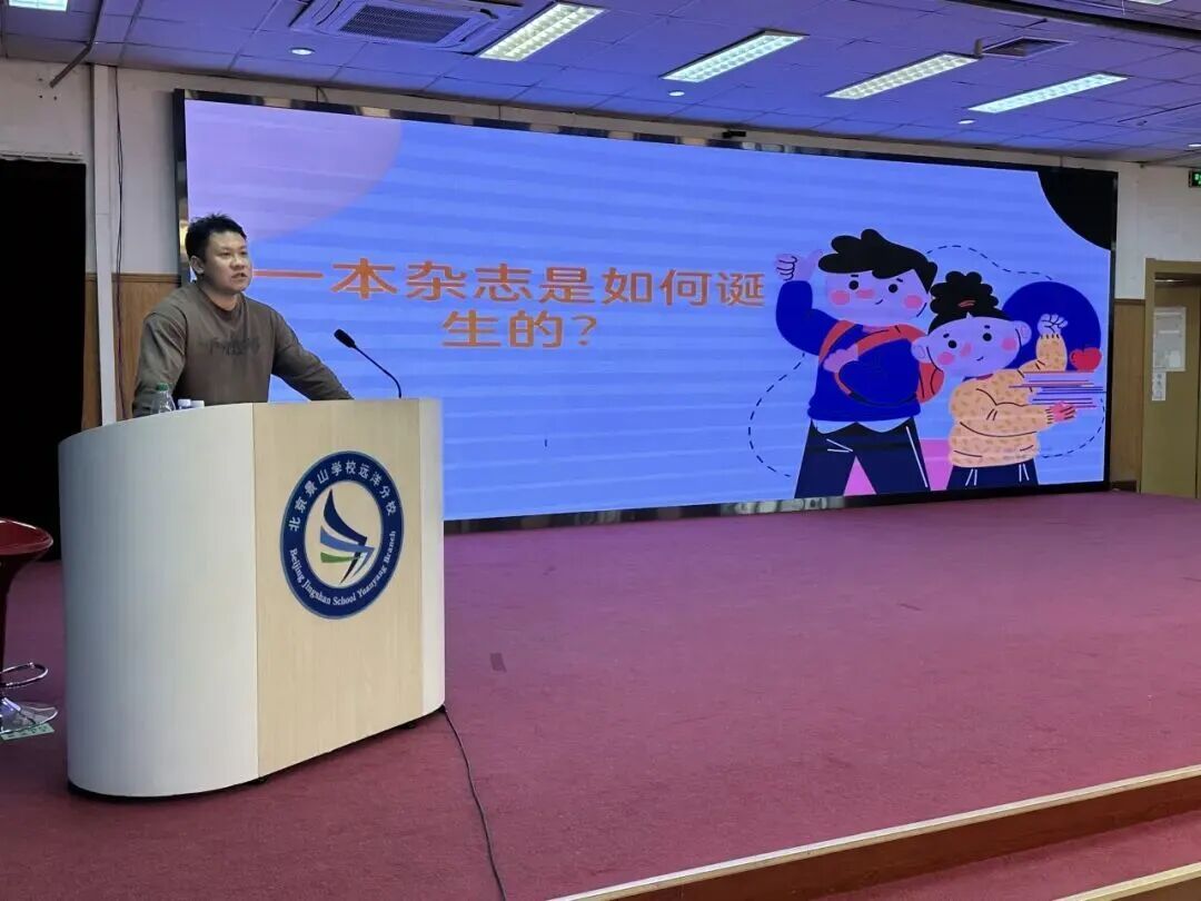 十一月,秋风送爽,北京景山学校远洋分校的科技月活动在五年级的同学间掀起了热潮。除了举办丰富多彩的活动,《我们爱科学》杂志的编辑也受邀进入校园,为同学们讲解一本杂志是如何“诞生”的。