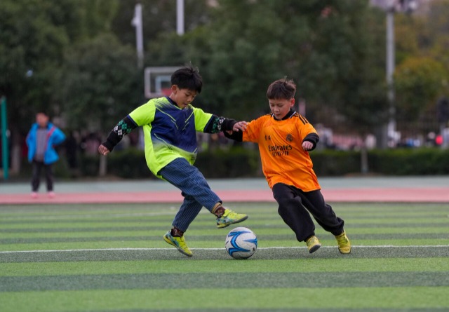 近年来,江西省吉安市吉州区韶山路小学积极推进足球教育进校园、进课堂活动,让孩子们快乐中锻炼身体,乐享足球运动。中国教育报-中国教育新闻网通讯员 李军 摄