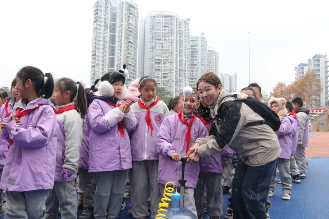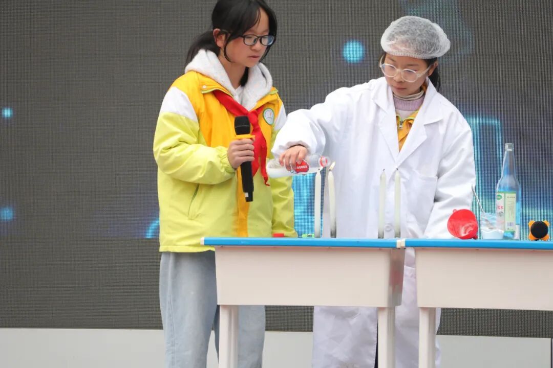 在惊叹中点燃好奇,“液氮爆米花”的震撼现象,激发探索欲望。在挑战中内化品格:通过“桥梁承重”等挑战,培养严谨、坚持的科学精神。操场上,“红领巾科学小讲解员”穿梭服务,成为“红领巾爱科学”最生动的注脚。