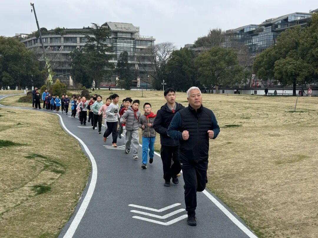 俱乐部的活动时间从早上7:25开始,到8:25结束,刚好一小时。下雨天也不中断,直接转到礼堂里接着练。寒暑假也不歇着,会办运动托管,周边学校的孩子,听说这里运动不用报名、没有门槛,也跟着家长一起来。假期里俱乐部还会组织孩子去西湖边、吴山等地户外跑。俞富根说:“就是让孩子把运动的习惯保持住,不因为放假就断掉。”