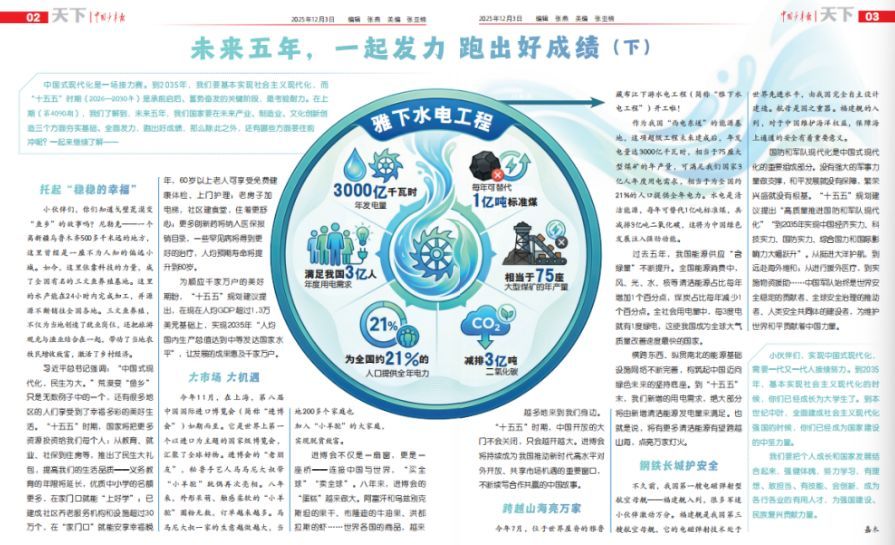 横跨东西、纵贯南北的能源基础设施网络不断完善,构筑起中国迈向绿色未来的坚持底座。到“十五五”末,我们新增的用电需求,绝大部分将由新增清洁能源发电量来满足。也就是说,将有更多清洁能源有望跨越山海,点亮万家灯火。(划重点)