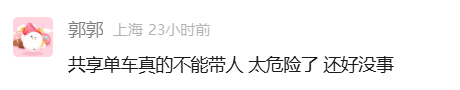 一位家长骑共享单车载孩子时