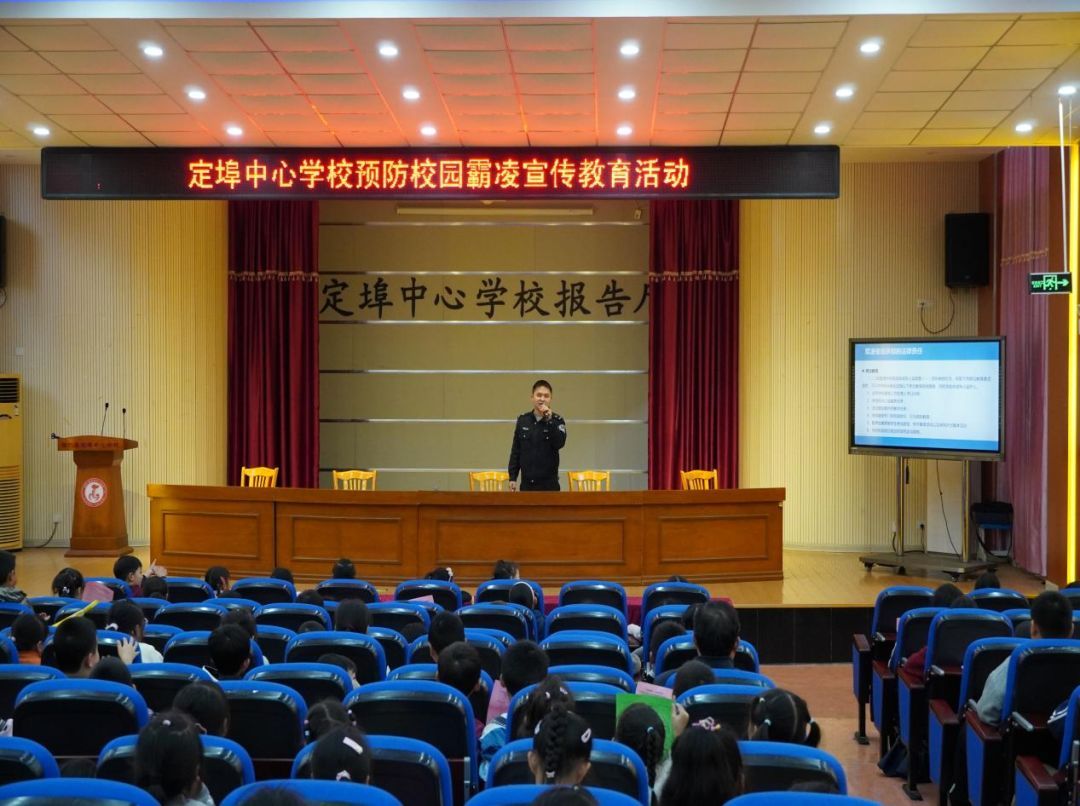 然而,校园欺凌的阴影,仍可能悄然侵袭这片净土,为一些孩子的成长之路蒙上阴霾。为防微杜渐,守护这一方安宁,2025年11月7日,定埠中心学校开展了一系列预防校园欺凌宣传教育活动,特邀郎溪县梅渚镇派出所唐杰、罗婷两位警官来校,共同为孩子们的健康成长保驾护航。