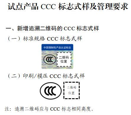 自2026年3月起,试点产品范围内新获得CCC认证证书的产品型号,应标注CCC追溯二维码后方可出厂、销售、进口或者在其他经营活动中使用。