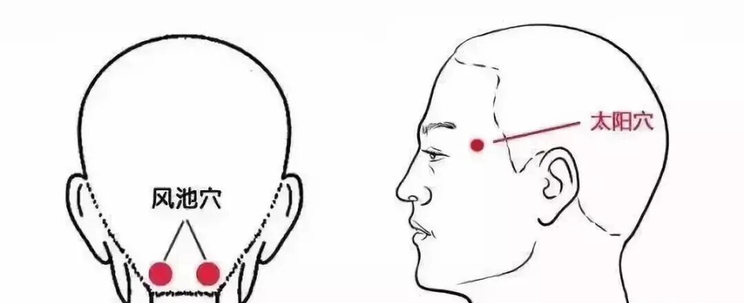穴位按摩:按摩太阳穴、百会穴,大拇指按摩风池穴,大约两分钟。