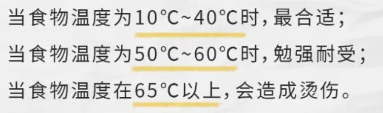 1、温度:10℃-40℃食管黏膜相对柔嫩,适宜的食物温度应在10℃-40℃, 而人们通常能耐受的最高食物温度约为50℃-60℃,一旦超过这个温度范围,食管黏膜就容易被烫伤。