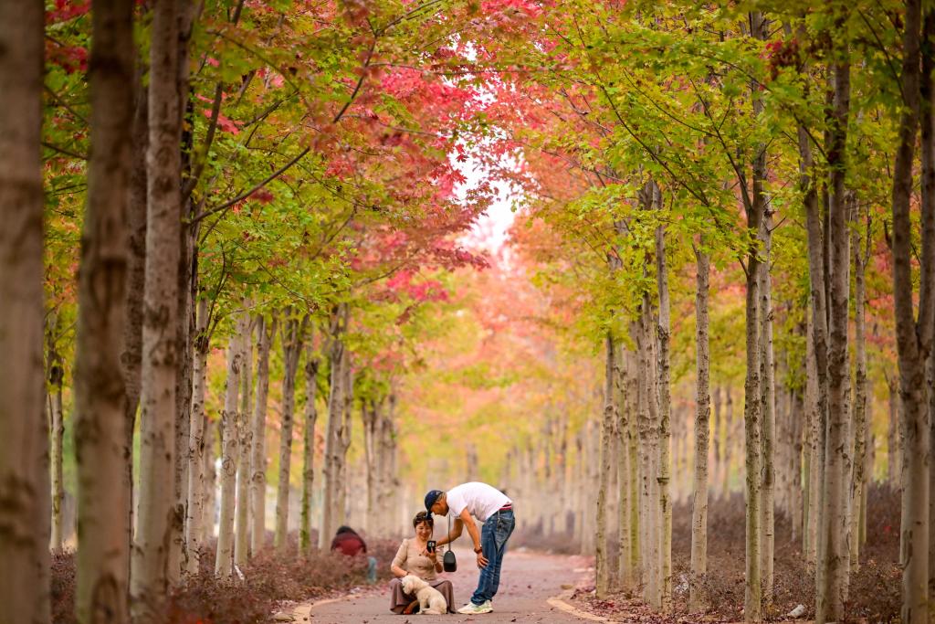 游客在河南省洛阳市宜阳县滨河公园游玩。新华社发(李卫超 摄)