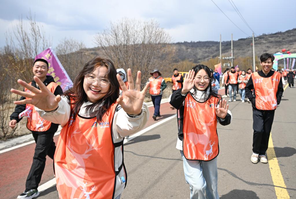 游客在内蒙古自治区兴安盟阿尔山市奥伦布坎景区参与户外健行。新华社记者 贝赫 摄