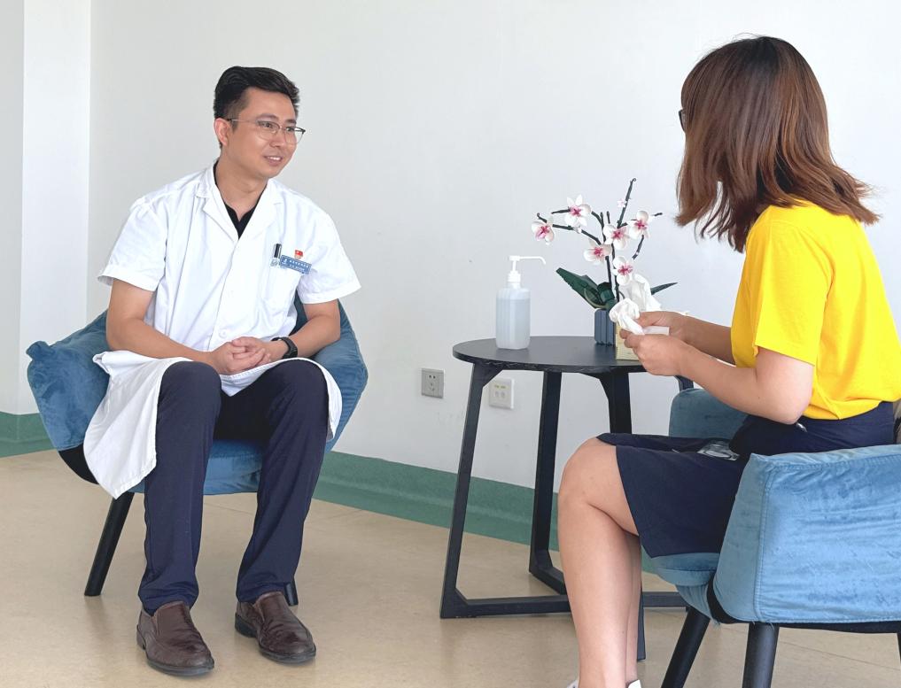 北京回龙观医院心理治疗室内医生在对患者进行心理咨询。(新华社发)