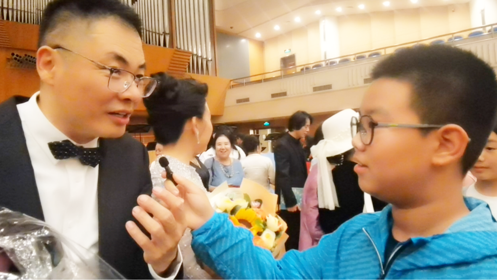 采访尾声,我还有幸与本次音乐会的美女主持人以及极具实力的钢琴老师徐添奇合影留念,为这次难忘的音乐之旅画上了圆满的句号。整场音乐会不仅是一场视听享受,更是一次心灵的洗礼,通过与艺术家的交流,学到了专业知识之外的人生感悟。未来,我会带着这份对艺术的热爱,继续以小记者的视角探索更多美好,记录下更多精彩瞬间。
