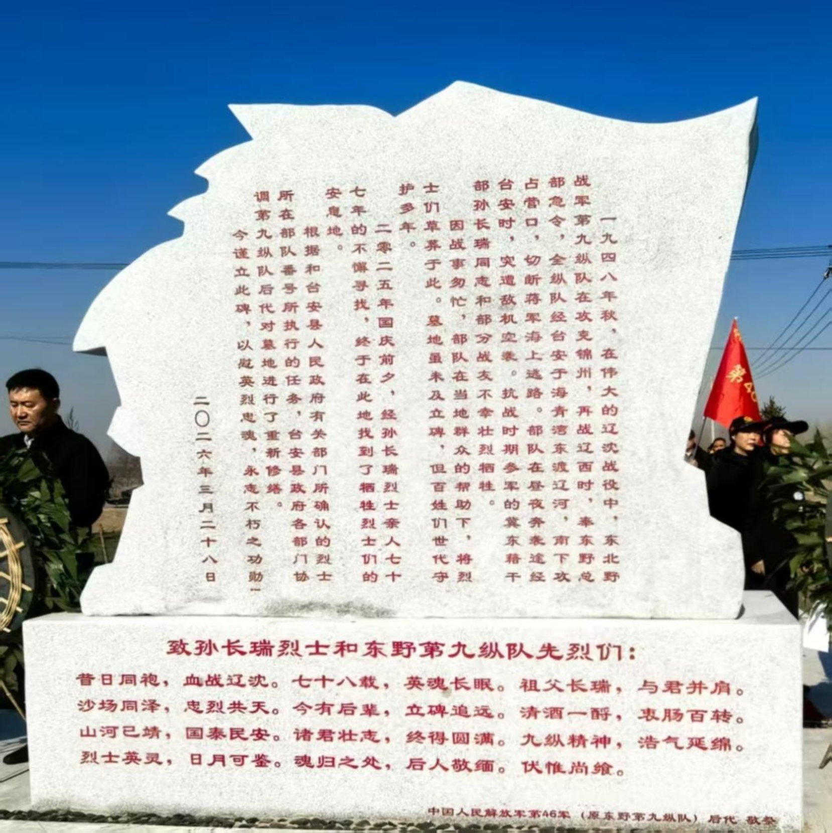 此次落成的烈士陵园,是台安县重要的红色文化地标与爱国主义教育基地 。它不仅告慰了东野第九纵队(46军)孙长瑞等烈士的在天之灵,更让革命先烈的英雄事迹与爱国精神代代相传,激励后人铭记历史、砥砺前行。