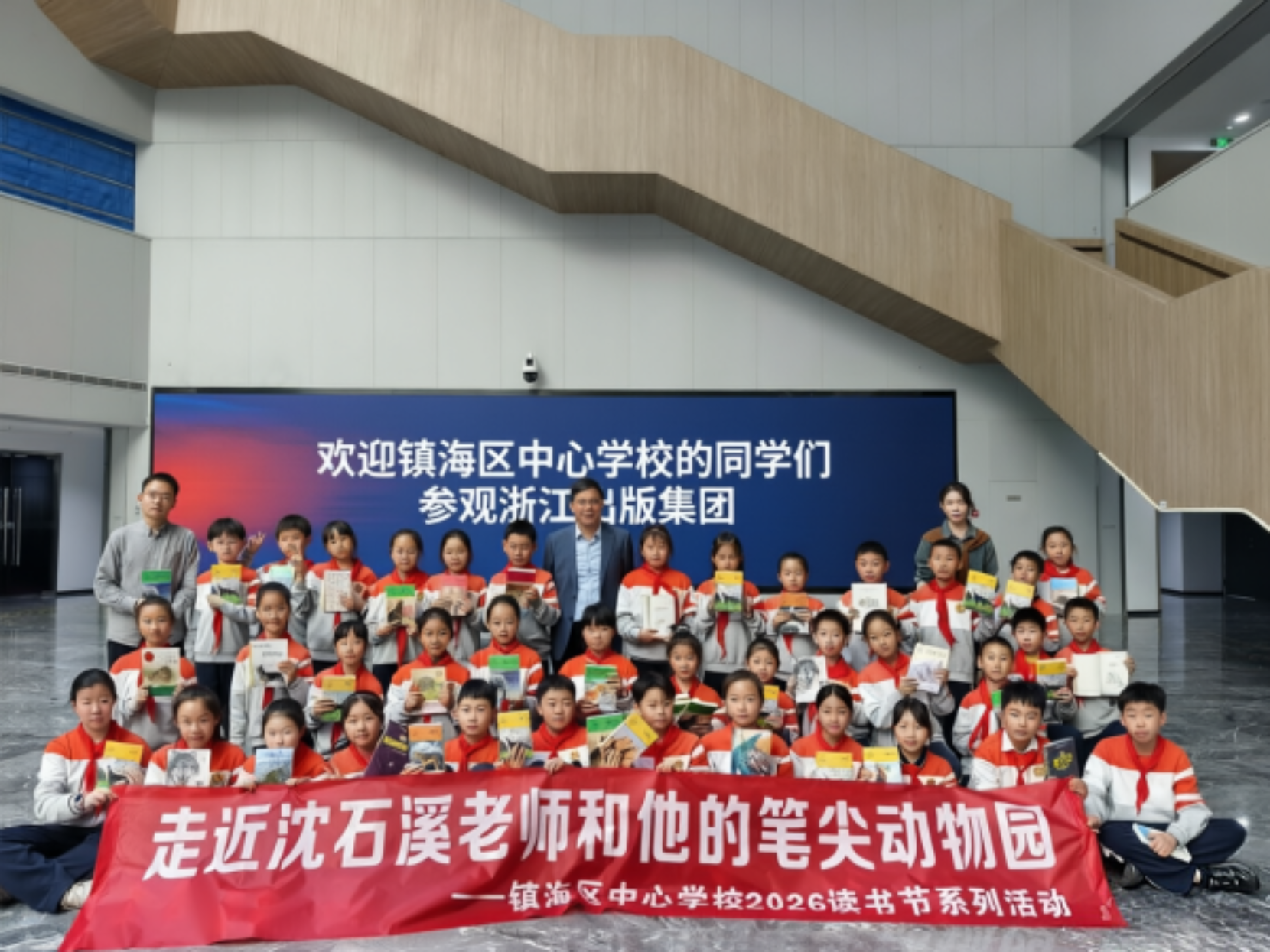 在第三十一个“世界读书日”到来之际,为进一步营造浓郁的校园书香氛围,引领同学们深耕阅读、爱上阅读,在书香文字中汲取成长养分、涵养精神品格,镇海区中心学校精心组织38位同学代表,前往浙江出版集团开展沉浸式参观学习实践活动,与著名儿童文学作家、“动物小说大王”沈石溪老师零距离对话,共赴一场温暖的文学之约。