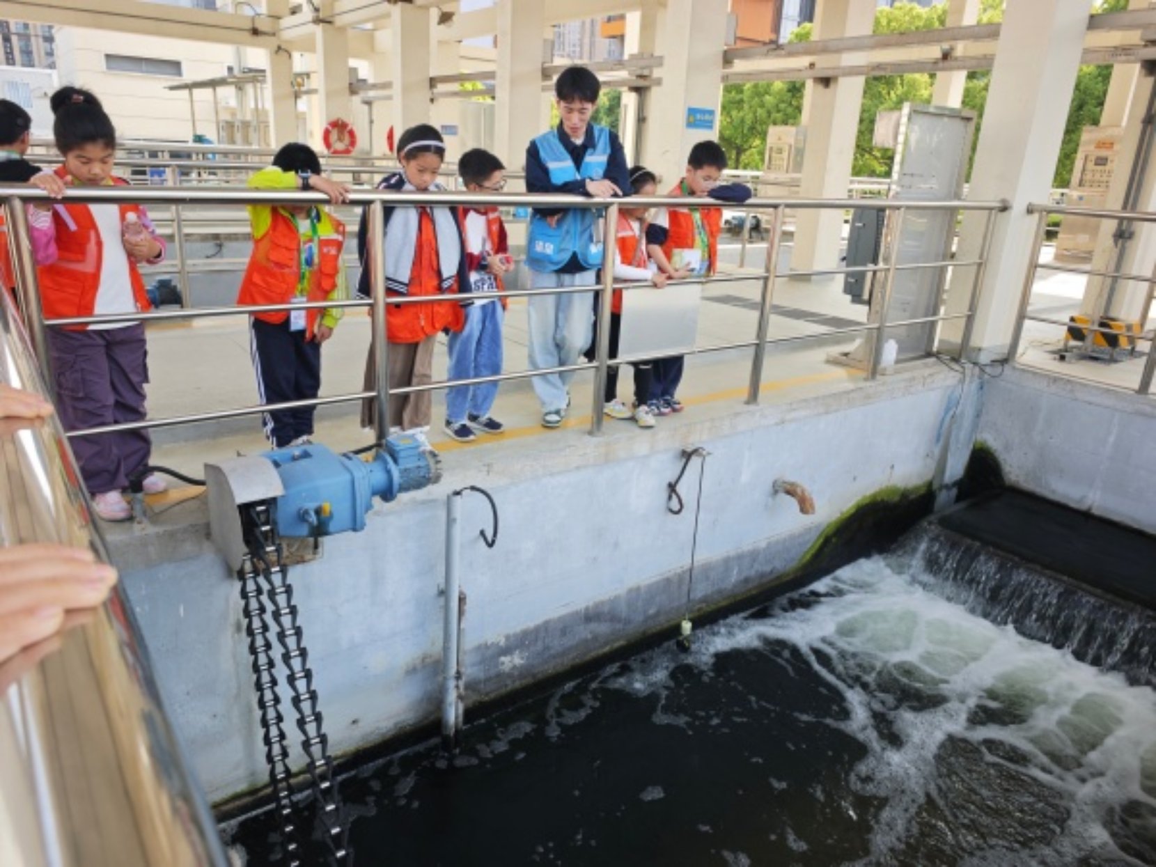 随后,在任老师的带领下,小记者们有序参观了再生水处理工艺区。近距离感受现代化水务处理的科技感与精准性。参观途中,能看到未经处理的污水在池中翻滚,散发出浓烈的臭味,让人真切体会到污水治理的必要性。