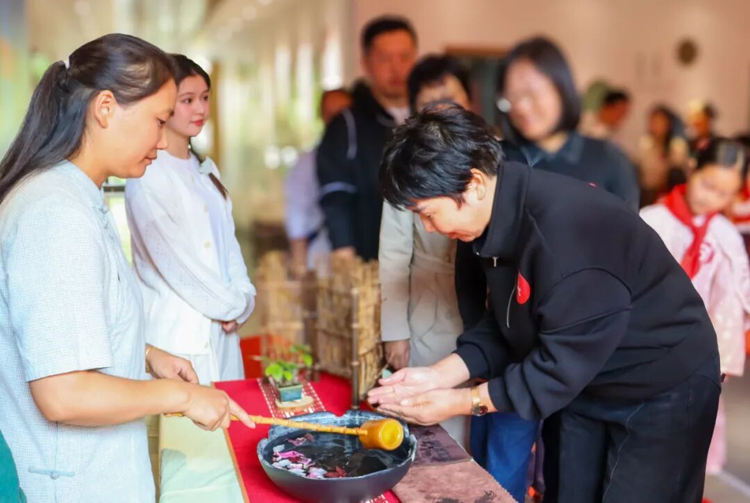 手掌拂过温润的清水,洗去的是尘埃,沉淀的是对长辈的恭敬之心。