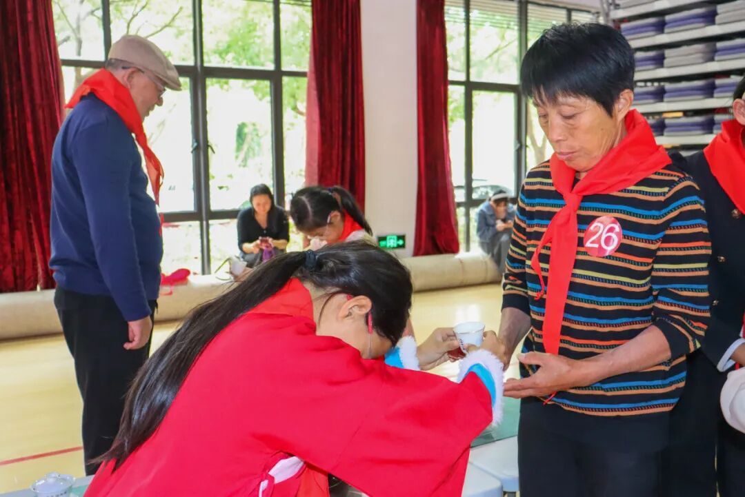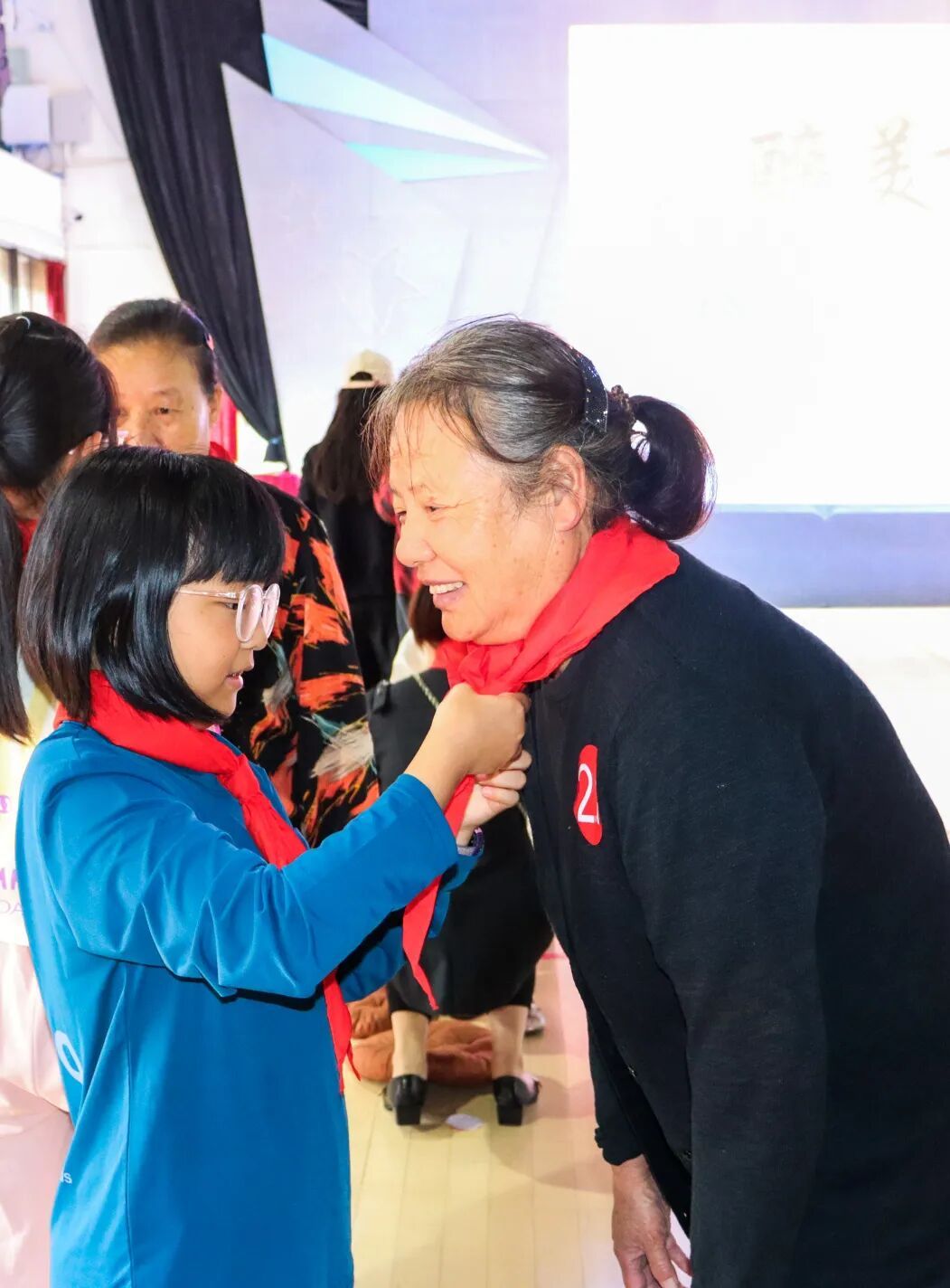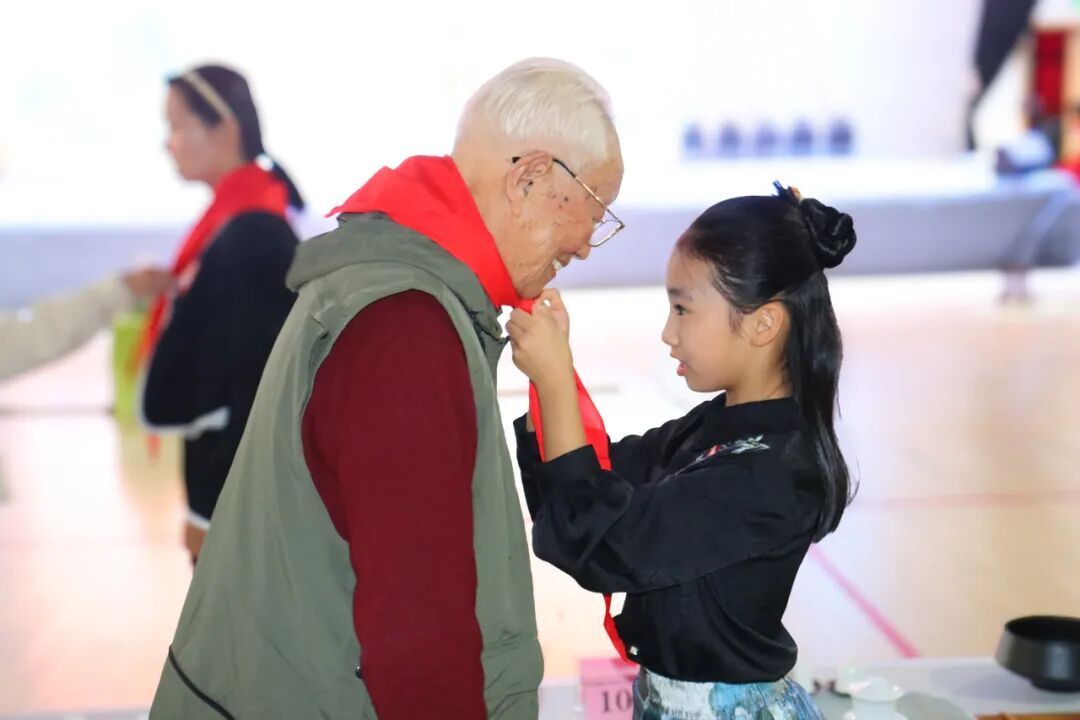 当孩子们郑重地为老人系上鲜艳的红领巾,这抹红,是信仰的传承,更是晚辈对长辈最真挚的敬意。
