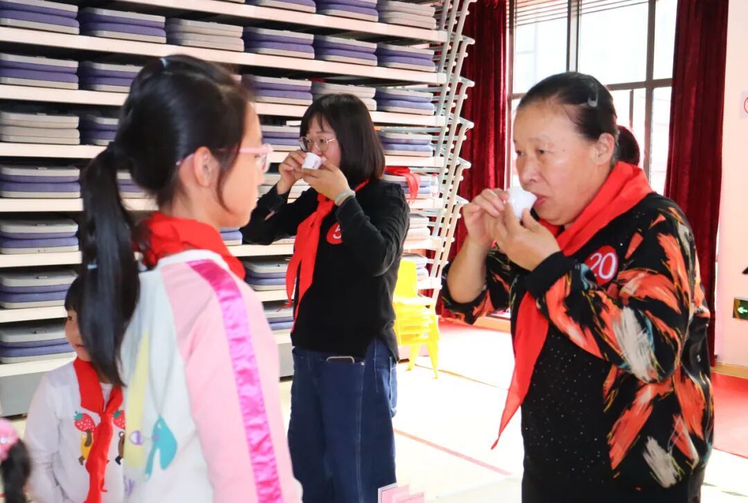 台上歌欢戏趣;台下孩子们和老人共同品尝松软香甜的重阳糕。在你一口我一口的分享里,不仅尝到了传统节令的味道,更品出了“老有所乐,少有所敬”的幸福滋味。