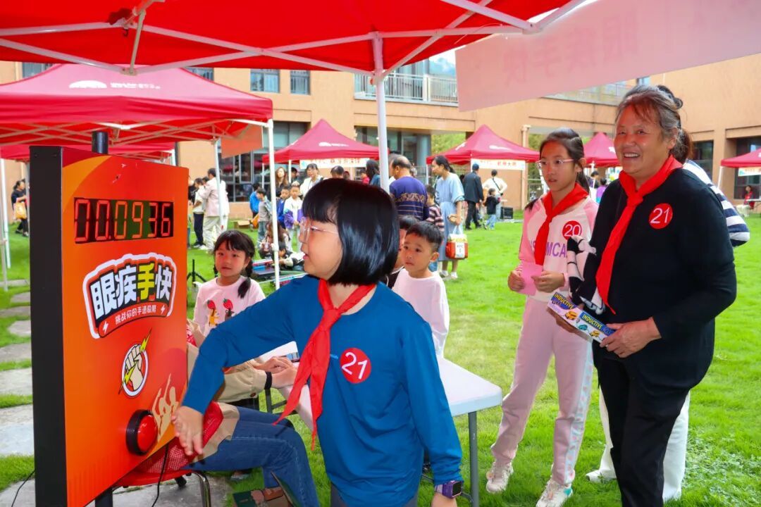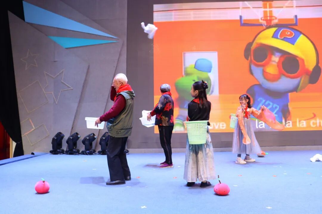 眼疾手快考验反应力,老人与孩子一起全神贯注,笑容满面。