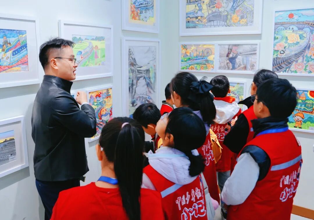 据悉,在国铁集团党组宣传部、中国少年儿童新闻出版总社的指导下,中国铁道博物馆、中国少年报、未来网联合北京局、西安局、上海局、广州局、成都局等集团公司党委宣传部开展了少年儿童文化作品征集展示活动,并评选出了一批优秀作品在此展示。在滕老师的指引下,小记者看到了小伙伴们兼具美感与设计的绘画作品,还学到了不少有关构图、色彩、颜料使用的绘画小知识。