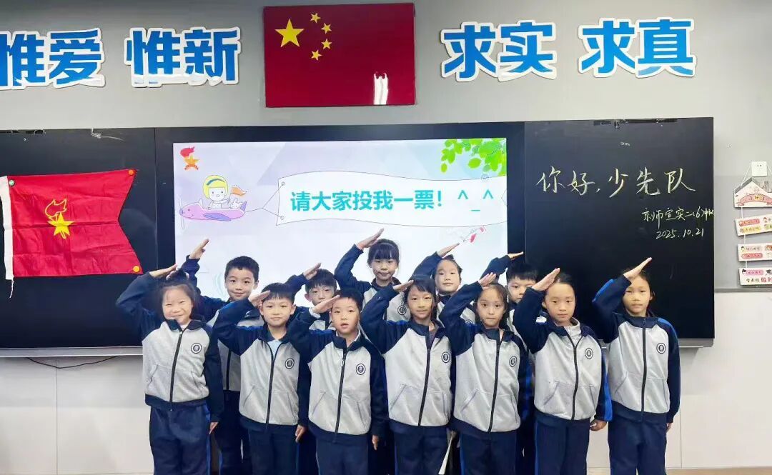 大队会前,学校少先大队组织二年级各中队开展“你好,少先队”主题队课,各中队聚焦“六知六会一做”核心内容,通过辅导员老师的生动讲解,让孩子们学习少先队历史、队旗队徽含义、队员作风等知识。在“我竞选”活动中,候选队员们以“竞选演讲+才艺展示”的形式,展现出新时代少年的蓬勃朝气与服务意识。孩子们还积极践行“一做”要求,主动帮助同学、整理环境卫生,以实际行动诠释责任与担当,为加入少先队做准备。