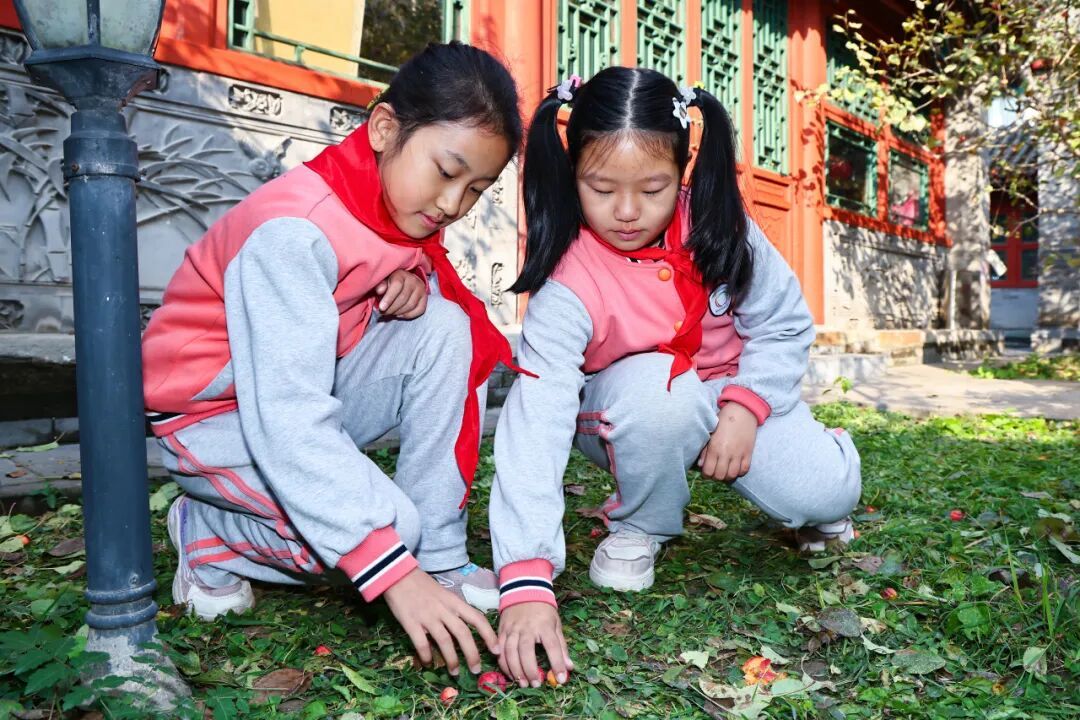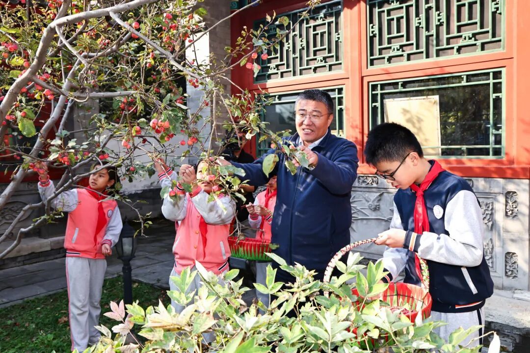 10月28日至29日,南北校区的党团队员代表在科学老师的指导下,开展了校园果实采摘活动。采摘前,科学老师为同学们讲解了果树的生长规律与采摘技巧,让大家在动手之前先“知其所以然”。随后,大家一同采摘了校园中熟透的石榴、红艳的海棠和饱满的山楂。