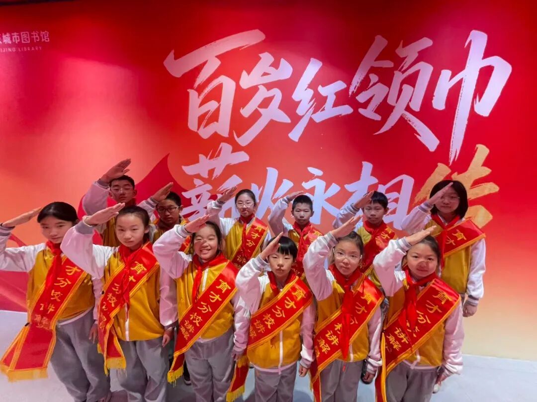2025年12月5日,北京市育才学校通州分校少工委组织一年级全体学生,前往北京城市图书馆参观“百岁红领巾 薪火永相传”主题展览。本次活动积极响应“跟着习爷爷学在博物馆”主题号召,引领一年级同学在沉浸体验中接受队前教育,传承红色基因。