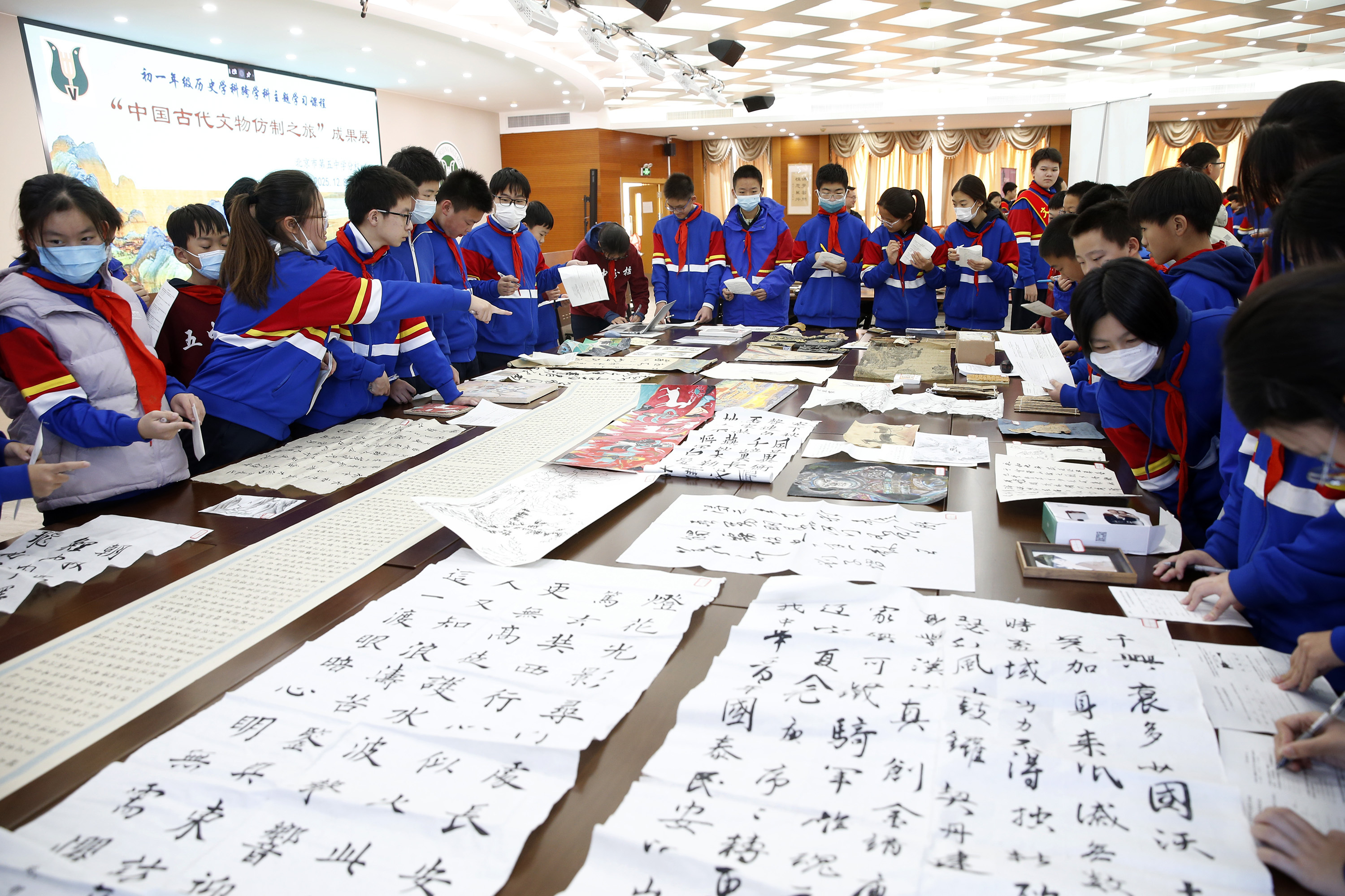 2025年12月8日,为深化跨学科融合教学实践,传承中华文明精髓,厚植文化认同感,北京五中分校初一年级历史教研组精心策划了师生联动的《探秘华夏瑰宝:古代文物仿制实践展》,于校园内盛大启幕。