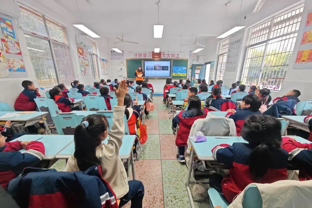 “同学们,大家上下学都用什么方式出行?途中有没有遇到过危险情况呀?”在岳阳市岳阳楼区朝阳小学的一间教室里,湖南理工大学生志愿者的提问刚落下,课堂瞬间变得热闹非凡。孩子们纷纷举手分享,有的细致描述搭乘公交时看到的车厢百态,有的兴致勃勃地说起乘坐电动车的速度与感受,还有的满脸惬意地讲述骑自行车时“风拂耳畔” 的快乐。与此同时,他们也分享了出行中的安全隐患——有同学目睹行人横穿马路被电动车撞倒,也有同学经历过雨天路面湿滑险些摔倒的惊险时刻。一旁的志愿者认真倾听每一位孩子的发言,不时点头记录,眼神里满是对孩子们出行安全的关切。