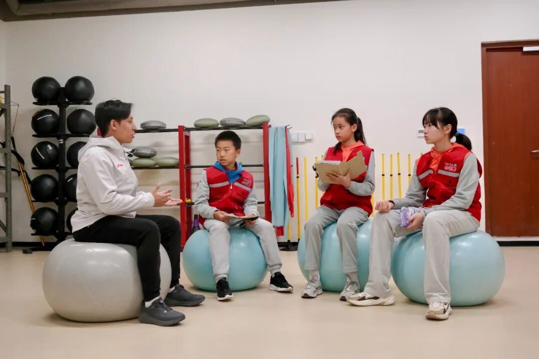 针对小记者们“为了考级有点卷、有点累”的困惑,他幽默地回应:“我们要适当‘内卷’(指良性竞争提升自己),但不要总是‘卷’自己。快乐来自于当下。比如你想完成一个跳跃,没成功会沮丧,但努力后终于完成了,那种成就感就是快乐。关注过程,而非结果。当你真正享受了过程,考级只是顺带的事情。”