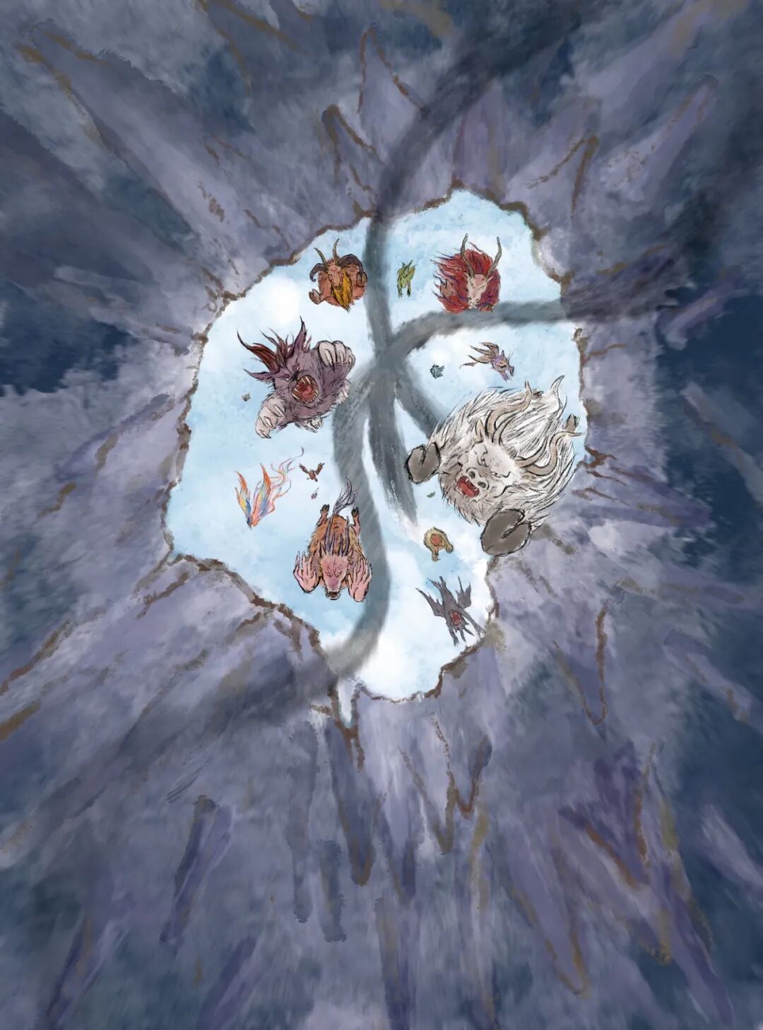 为还原《山海经》的古韵,典婆婆翻阅了明朝万历时期蒋应镐的《山海经(图绘全像)》、清代汪绂绘的《山海经存》等多部古代《山海经》画本,从传统线条中汲取灵感;但她并未局限于“复刻”——古代画本多是简单勾勒,少有情绪表达,而典婆婆在创作时,特意为异兽赋予“性格”:狡诈的穷奇、温驯的駮兽、是非的朱厌,每一头异兽的神态都贴合故事设定,让读者一眼就能感受到它们的特质。