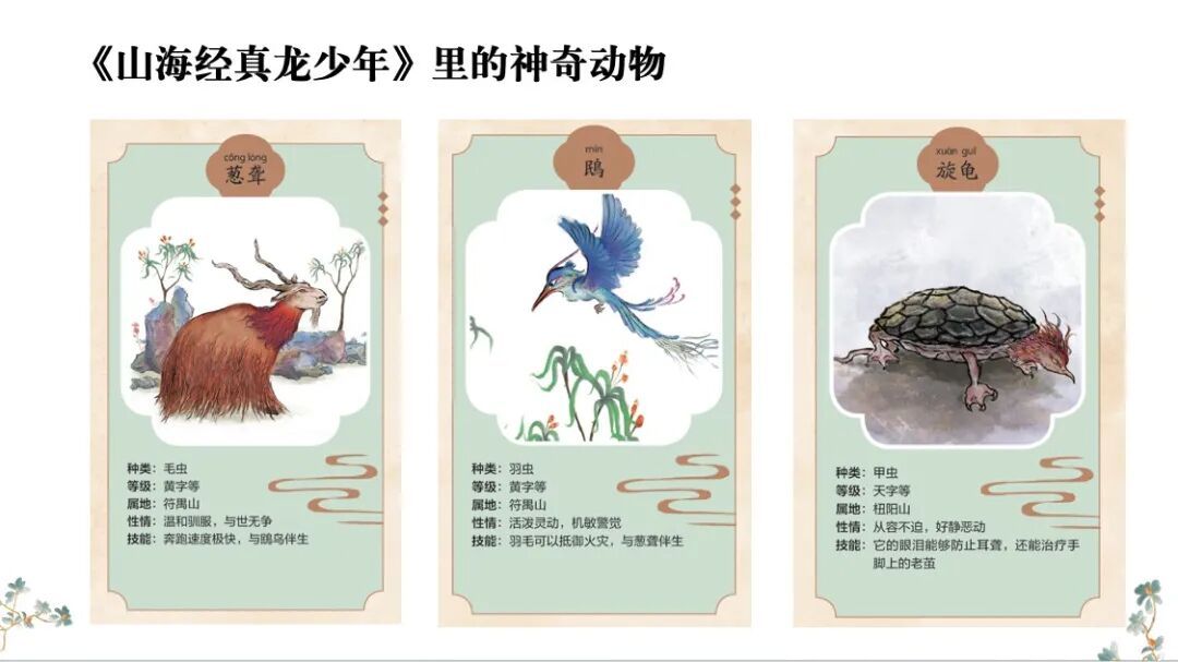 除了原创故事线,马明老师还透露:书中所有异兽均出自《山海经》原著,创作时既尊重古籍记载,又加入巧思创新——比如按“天地玄黄”为异兽分等级(“天”字等能力最强,“黄”字等最普通);为每头异兽赋予性格;参考中国古代动物分类法——给异兽建“专属档案”:有皮毛的异兽称“毛虫”、有羽毛的异兽称“羽虫”、有甲壳的异兽称“甲虫”。