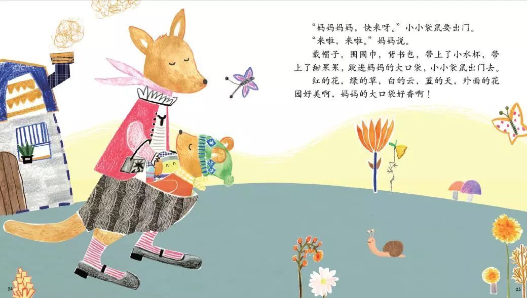 “妈妈妈妈,快来呀。”小小袋鼠要出门。