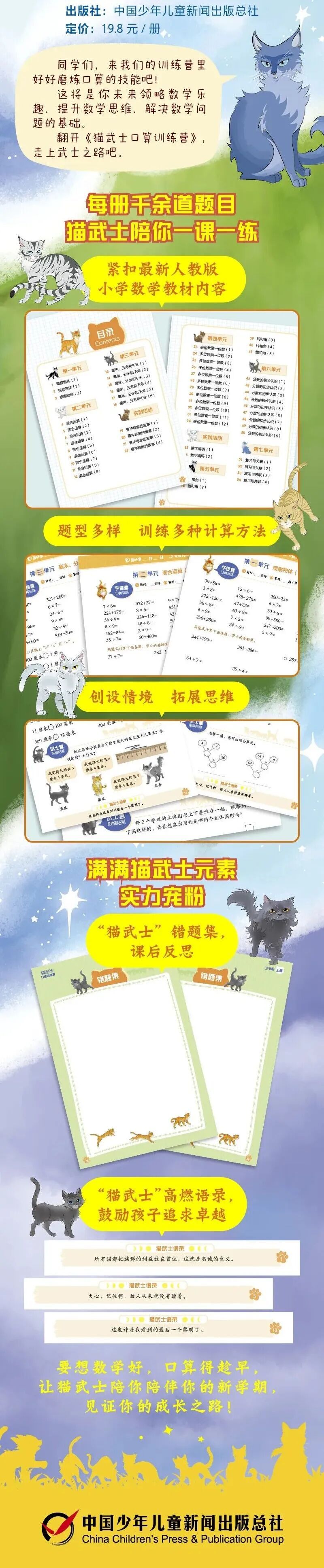 猫武士专属错题集,方便课后反思总结;还有高燃语录,时刻鼓励孩子追求卓越,成为数学世界里勇往无前的“小武士”~