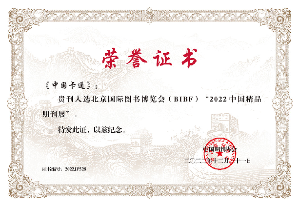 《中国卡通》在2010年被新闻出版总署评为“向全国少年儿童推荐的优秀少儿报刊”;2011年在第十八届北京国际图书博览会举办的首届BIBF全国十佳动漫出版物评选活动中被评为“首届BIBF全国十佳动漫报刊”;2014年~2018年,曾连续5年入选国家新闻出版广电总局“向全国少年儿童推荐的百种优秀报刊”;2017年获得第七届少儿报刊金奖;2019年、2020年、2022年入选北京国际图书博览会(BIBF)“精品期刊展”。《中国卡通》是真正的国家认可的高品质刊物,绝对让家长们放心!