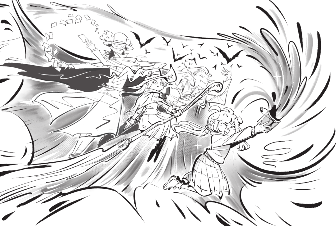 “噗——”我朝风车吹。风车“呼呼”转,有东西从扇叶里飞出: