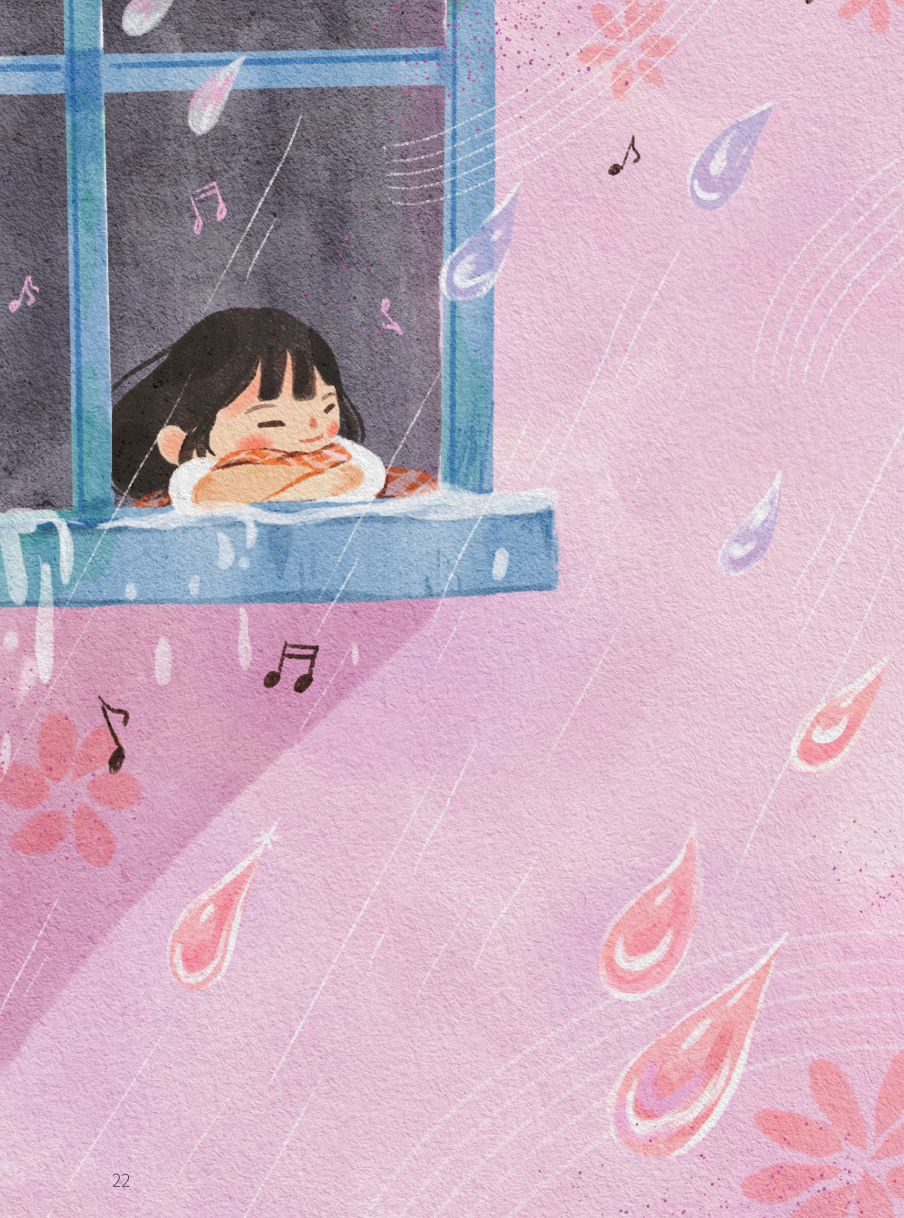 蕙蕙最讨厌下雨天了,湿漉漉的地面像被铺满了隐形香蕉皮,稍不留神就会摔个小屁蹲儿。更可怕的是雨水落下后,发出的那些稀奇古怪的声音。“蕙蕙别怕!”妈妈摸着她的头,细声安慰道,“那是雨精灵们在开音乐会呢。”