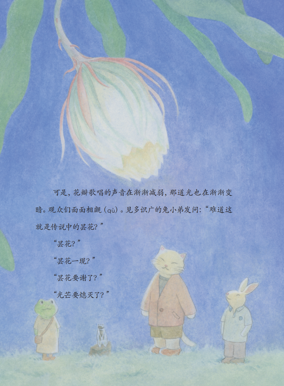 ‍‍天黑了。一个小小的花骨朵儿没有睡,她藏在一片绿长条刺叶的背后。她是一个害羞的花骨朵儿。即便在黑暗中,她依然会害羞得发抖。可是,在这个很黑很黑的夜里,她顾不上害羞,她屏住呼吸,默默地拼命用力。她知道,在很黑很黑的夜里,世界需要一道光芒。