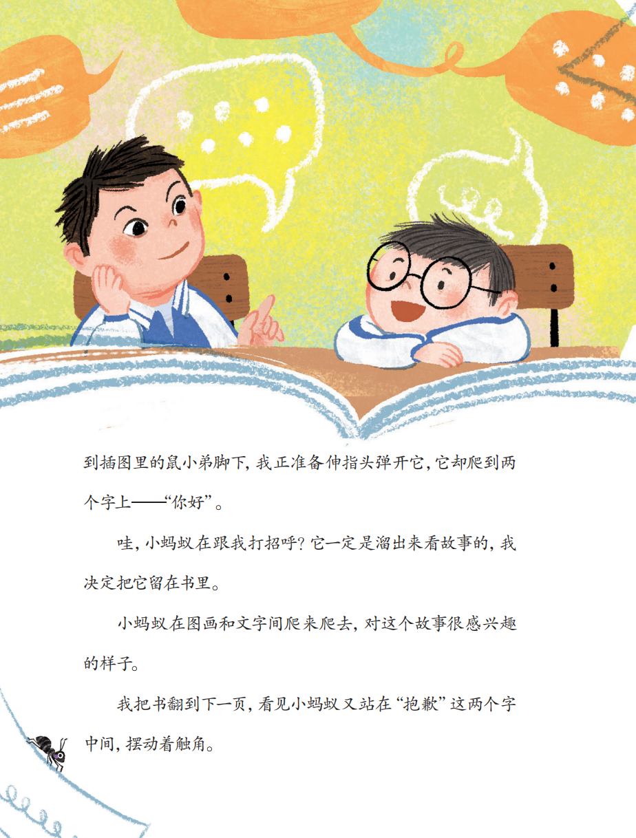 “我”的同桌旗旗很可爱,个子小小的,眼睛也小小的,还有点儿口吃,说起话来断断续续的,引得大家发笑,于是旗旗就变得很少说话了。旗旗和“我”的关系很好,还会学“我”说话。但有一天,旗旗惹“我”生气后,居然用了神奇的方法来道歉……