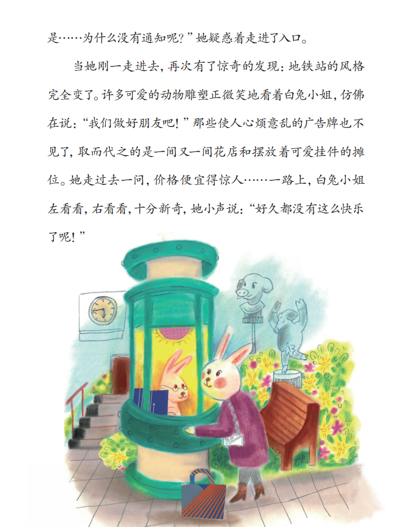 傍晚,当夕阳的最后一抹红色消失时,森林的夜晚来临了。白兔小姐拖着工作了一天的、疲乏的身体,来到了森林地铁站。没想到,硬邦邦、冷冰冰的森林地铁站大变样,她还登上了一辆神秘的、开满了鲜花的列车……