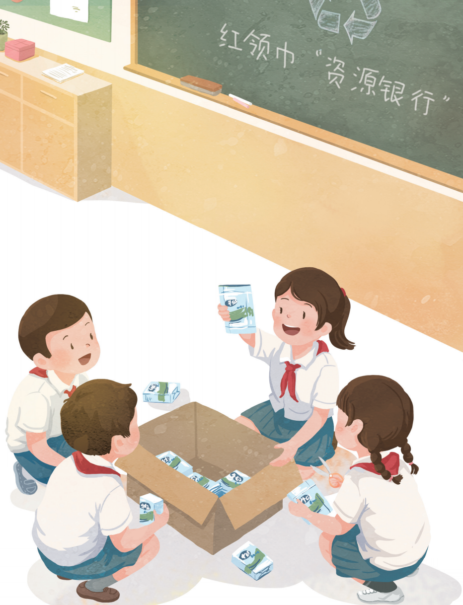 九月开学,学校的“红领巾驿站”如期开始工作。“我”成为了《红领巾“资源银行”》(王禹微)的“回收牛奶盒”管理员,工作就是教同学们清理和整理牛奶盒,要知道,牛奶盒经过处理后能被再生为纸浆或其他环保材料呢。今天,我们经常聚在一起,一起整理牛奶盒,一起分享故事……