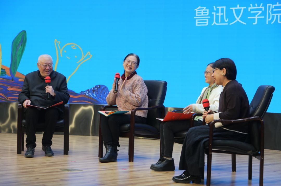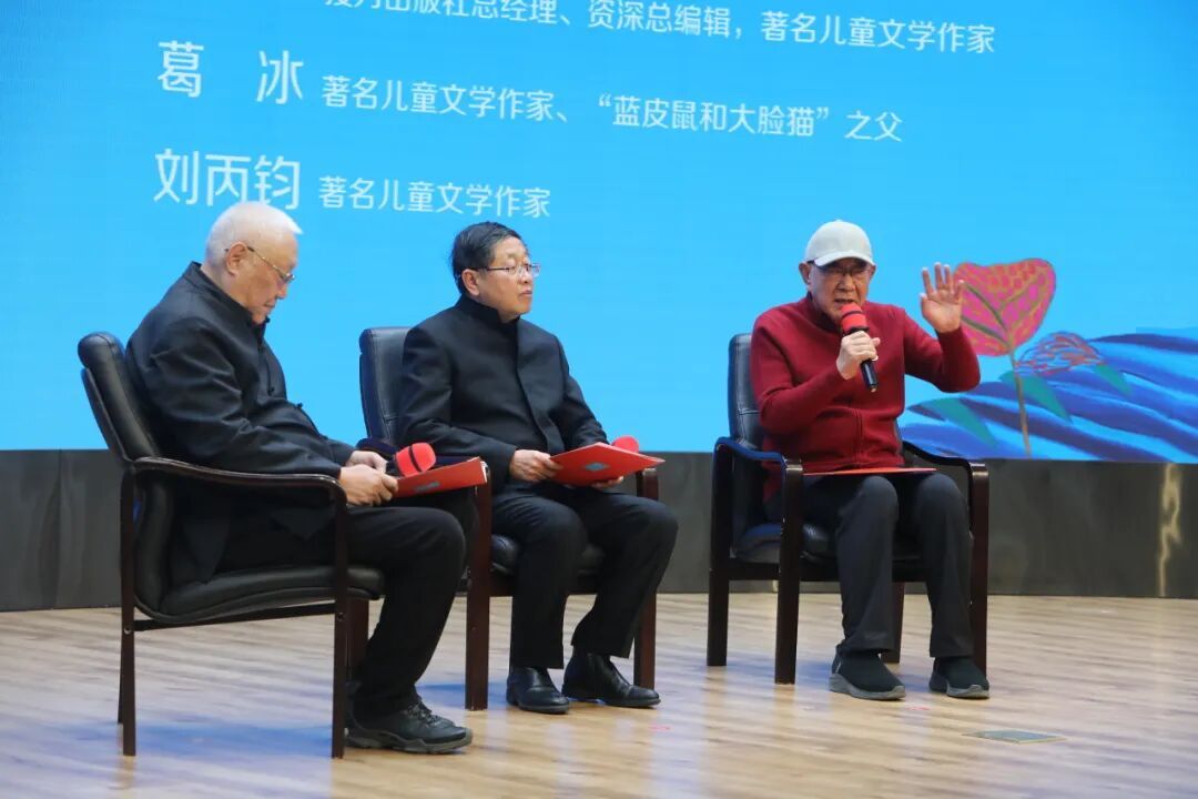 在“无法投寄的信——微光永恒”环节,高洪波与接力出版社总经理、资深总编辑、著名儿童文学作家白冰,著名儿童文学作家、“蓝皮鼠和大脸猫”之父葛冰,著名儿童文学作家刘丙钧,探讨了“文学如何定格生命的瞬间”以及“作家与读者之间的微小相遇”两个话题。