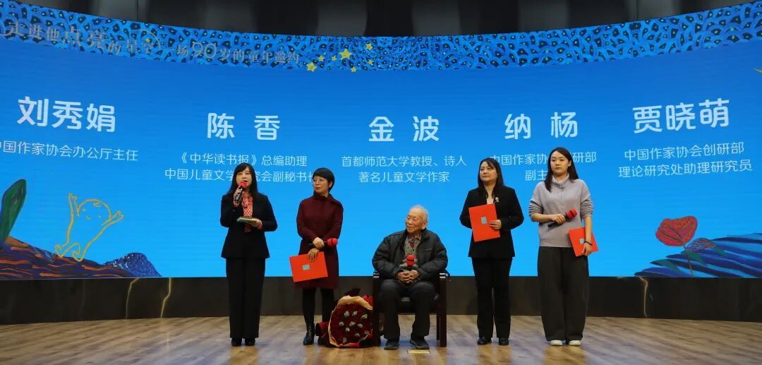 2025年12月26日,由中国作家协会创研部、中国少年儿童新闻出版总社、河北教育出版社联合主办的“走进他点亮的星空 一场九十岁的童年邀约——《点亮满天星——金波90岁寄小读者》新书发布会”在中国现代文学馆举行。本次活动由中国少年儿童新闻出版总社党委书记、董事长曾锐主持。
