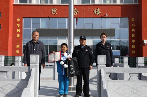 10月29日上午,宁夏回族自治区彭阳县公安局政工室、白阳派出所民警、辅警来到了彭阳县第五小学,为五(5)班的杨明同学举办了一场特殊的“颁奖典礼”,表彰他拾金不昧的行为。