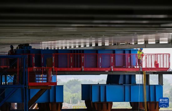 9月16日,施工人员在天津市滨海新区西中环快速路跨海河桥工程建设现场作业。 新华社记者 赵子硕 摄