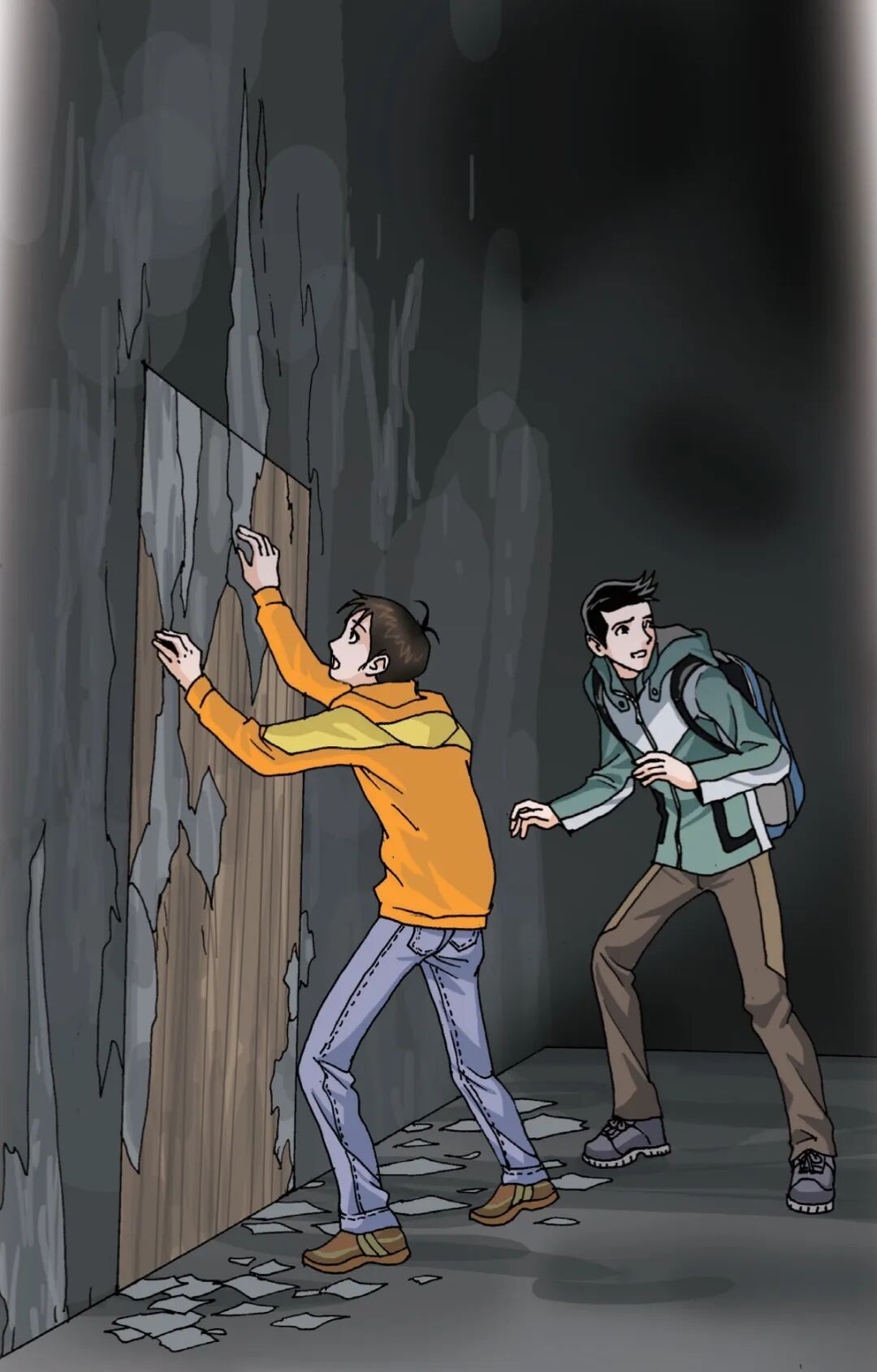 安仔和强子不约而同地惊跳起来,没命地狂奔。一想到怪影就在他们身后步步紧逼,两人咬着牙拼命提高速度,不知怎么的,他们拐进了一条长长的走廊,走廊尽头只有一堵坚固的墙壁。