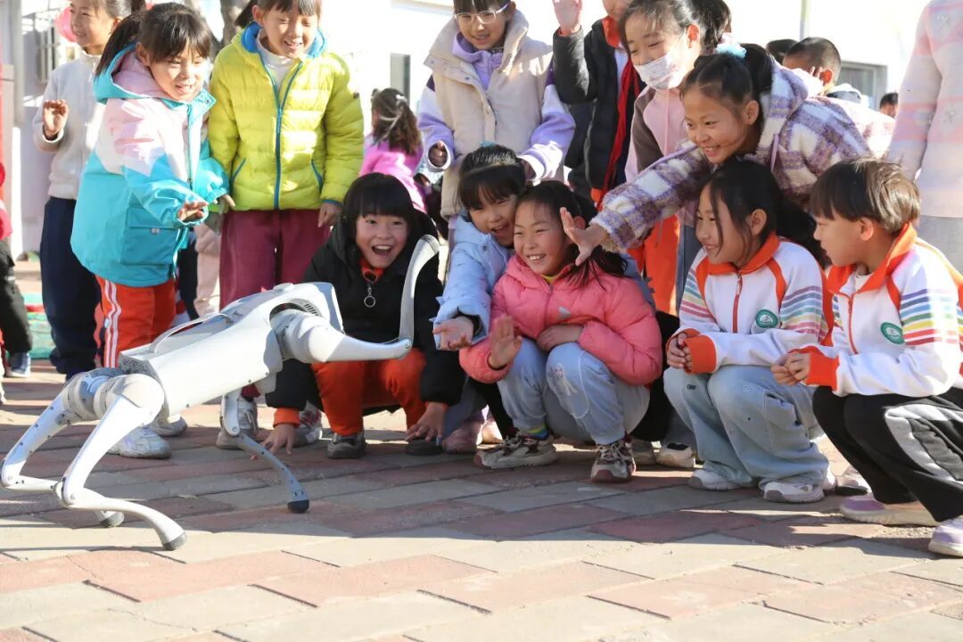 瞧!在活动现场,还有一个特殊的“小伙伴”——机器狗备受青睐。队员们围拢在辅导员的身边,认真学习机器狗的操控技巧。当他们发出“跳跃”“拜年”等指令时,机器狗就会灵活地做出一系列憨态可掬的动作,引得大家阵阵欢呼。