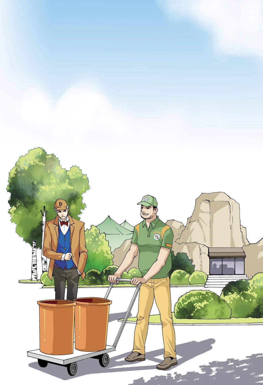 这时,一个身穿饲养员制服的人推着两个大桶从小D探长身边走过,桶里装着满满的肉糜粥。
